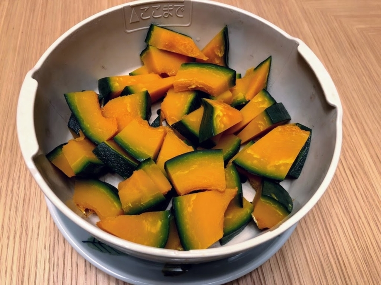 ホットクックは蒸しが大活躍という話を書きました。 katsumakazuyo.hatenablog.com 例えば写真が、朝蒸したカボチャで・・