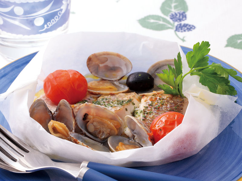 アクアパッツア風紙包み蒸し まかせて調理(蒸す・ゆでる)