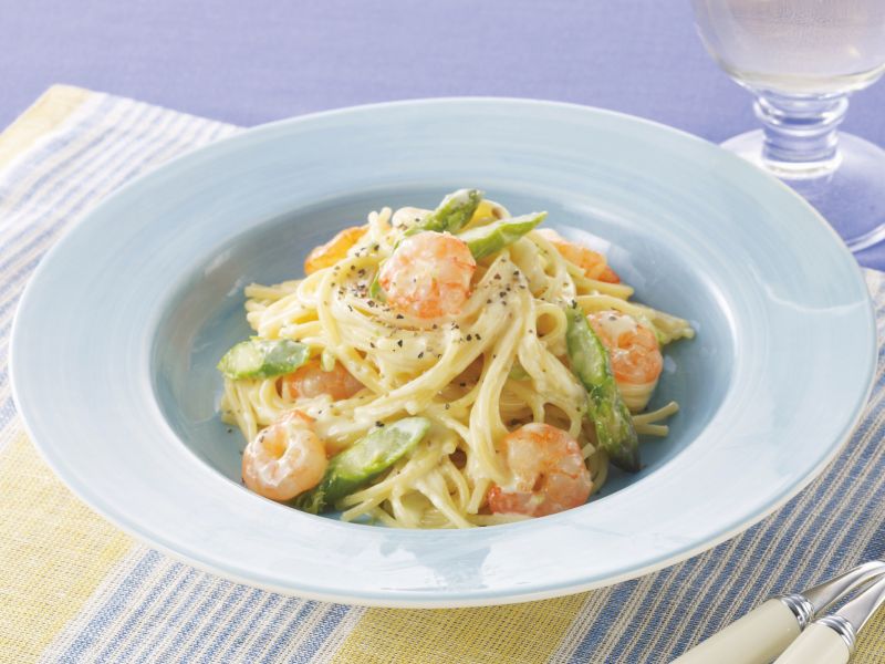 《えびとアスパラのクリームパスタ》