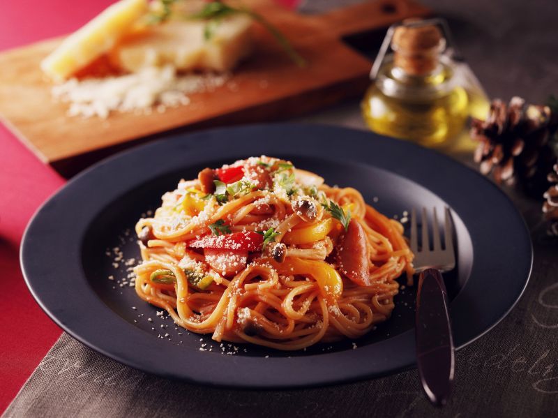 好みの具材や、市販のパスタソースを使ったパスタが作れます。